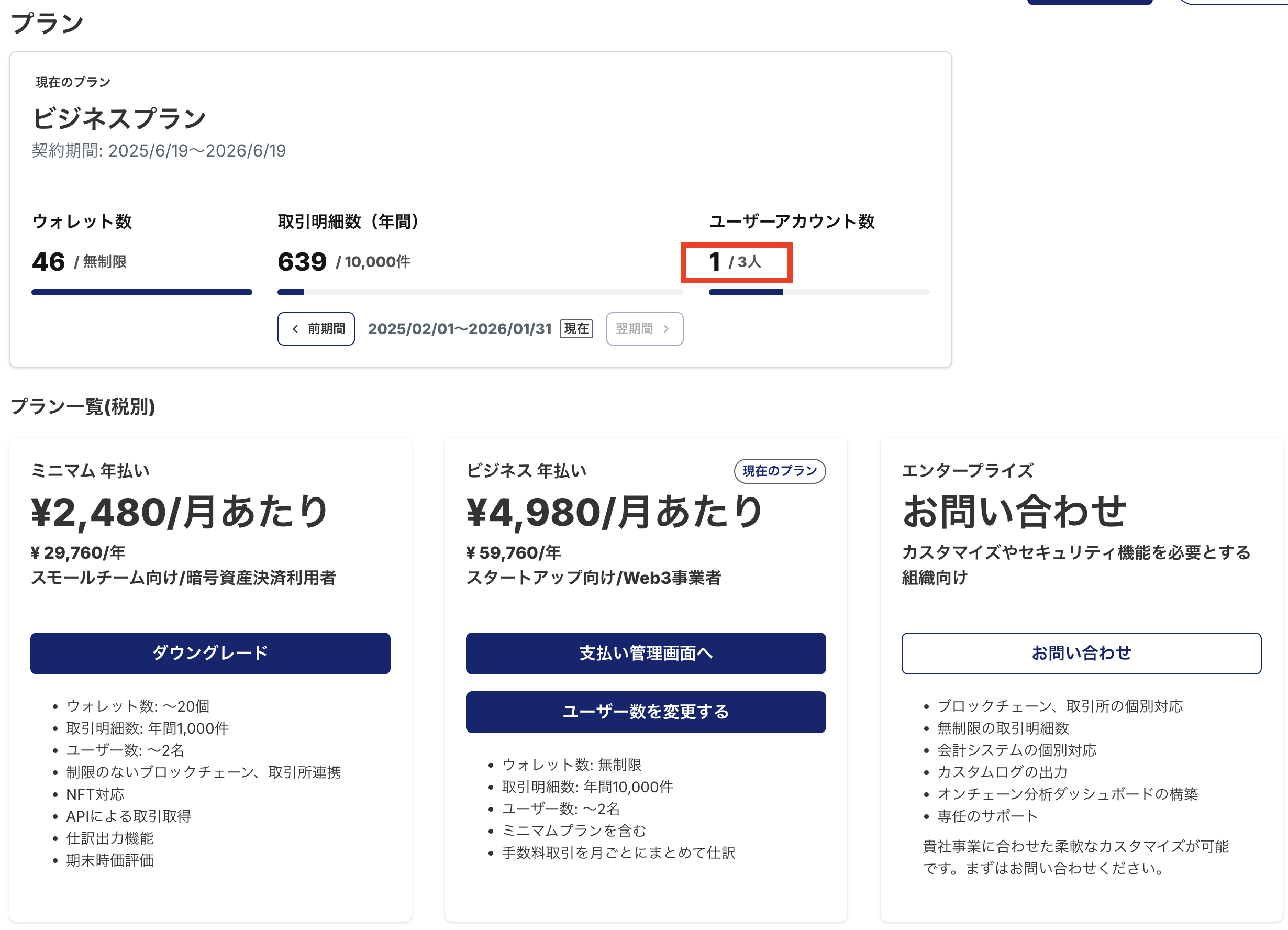 - 決済完了後、プラン管理画面でユーザー数が更新されていることをご確認ください。