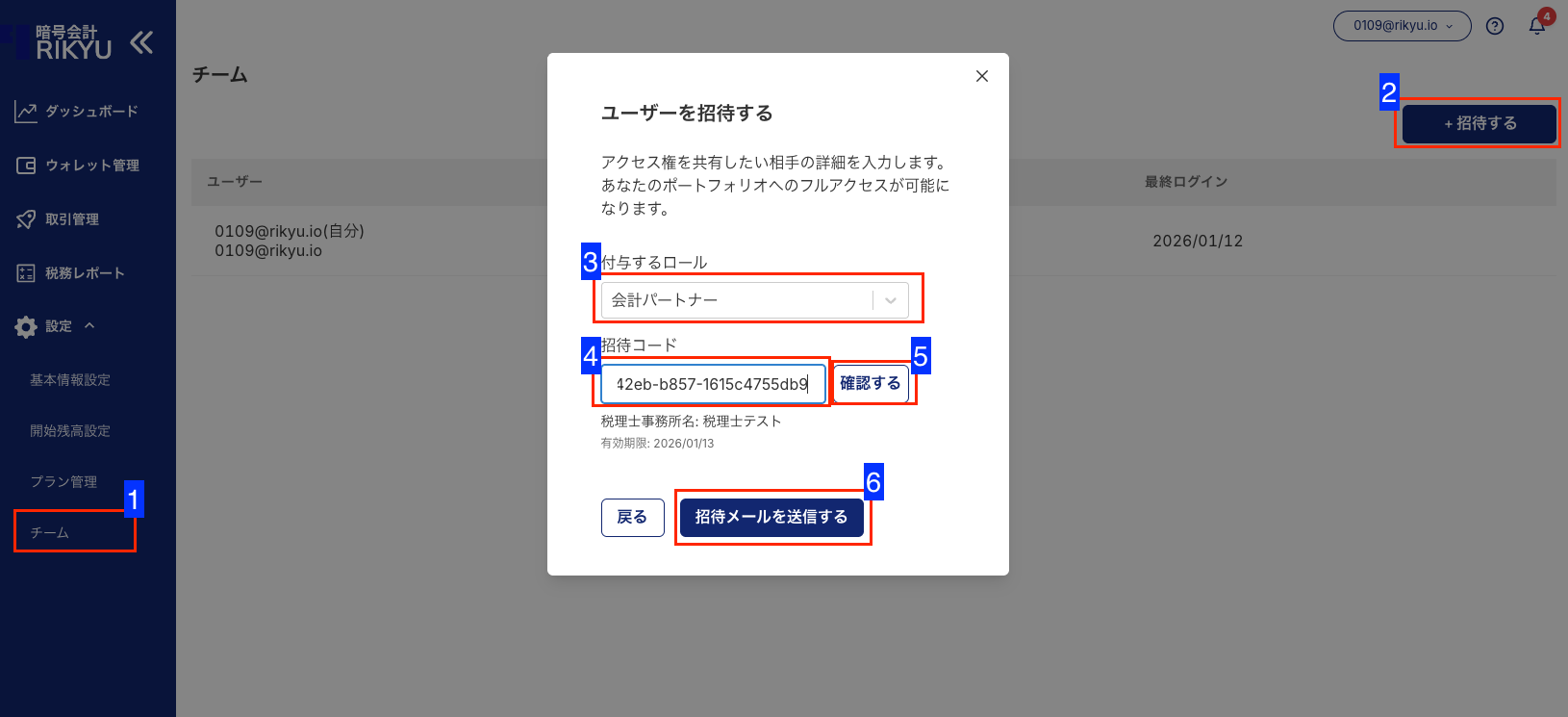 - 「招待メールを送信する」をクリックします