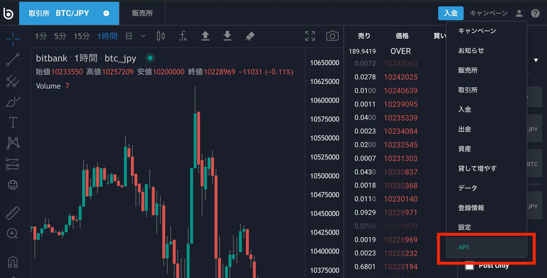 bitbankへログイン後、ヘッダーの人アイコンからAPIを選択してください。bitbankへログイン済みであれば下記のリンクからAPIページへ遷移することも可能です。