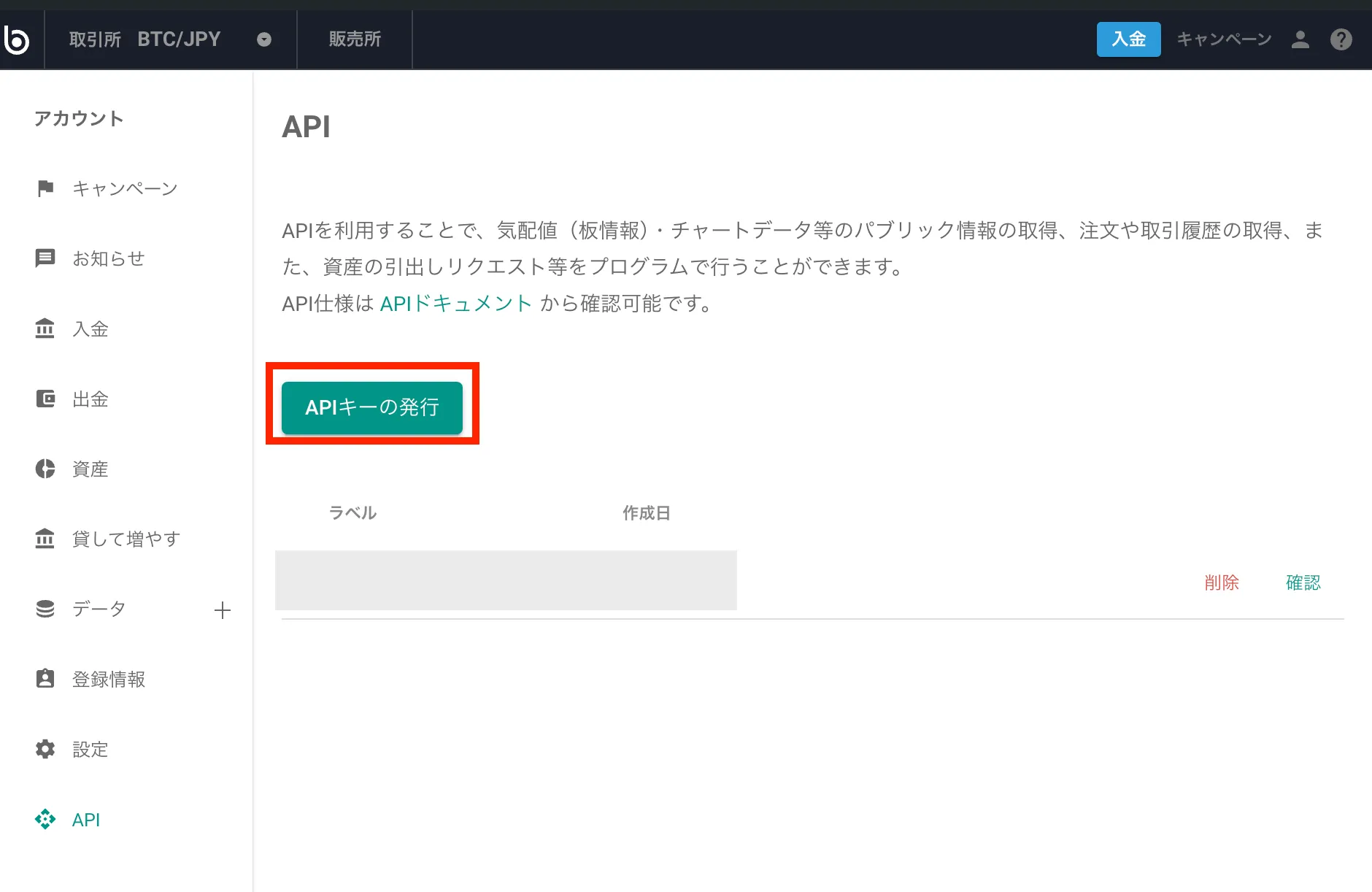 APIページ直接リンク: https://app.bitbank.cc/account/api