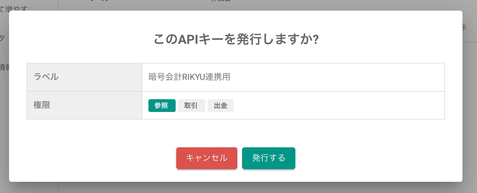 Q: APIキーの権限設定はどうすればよいですか? A: RIKYUでは「参照」権限のみで十分です。売買や出金などの権限は不要ですので、セキュリティのため「参照」のみを選択してください。