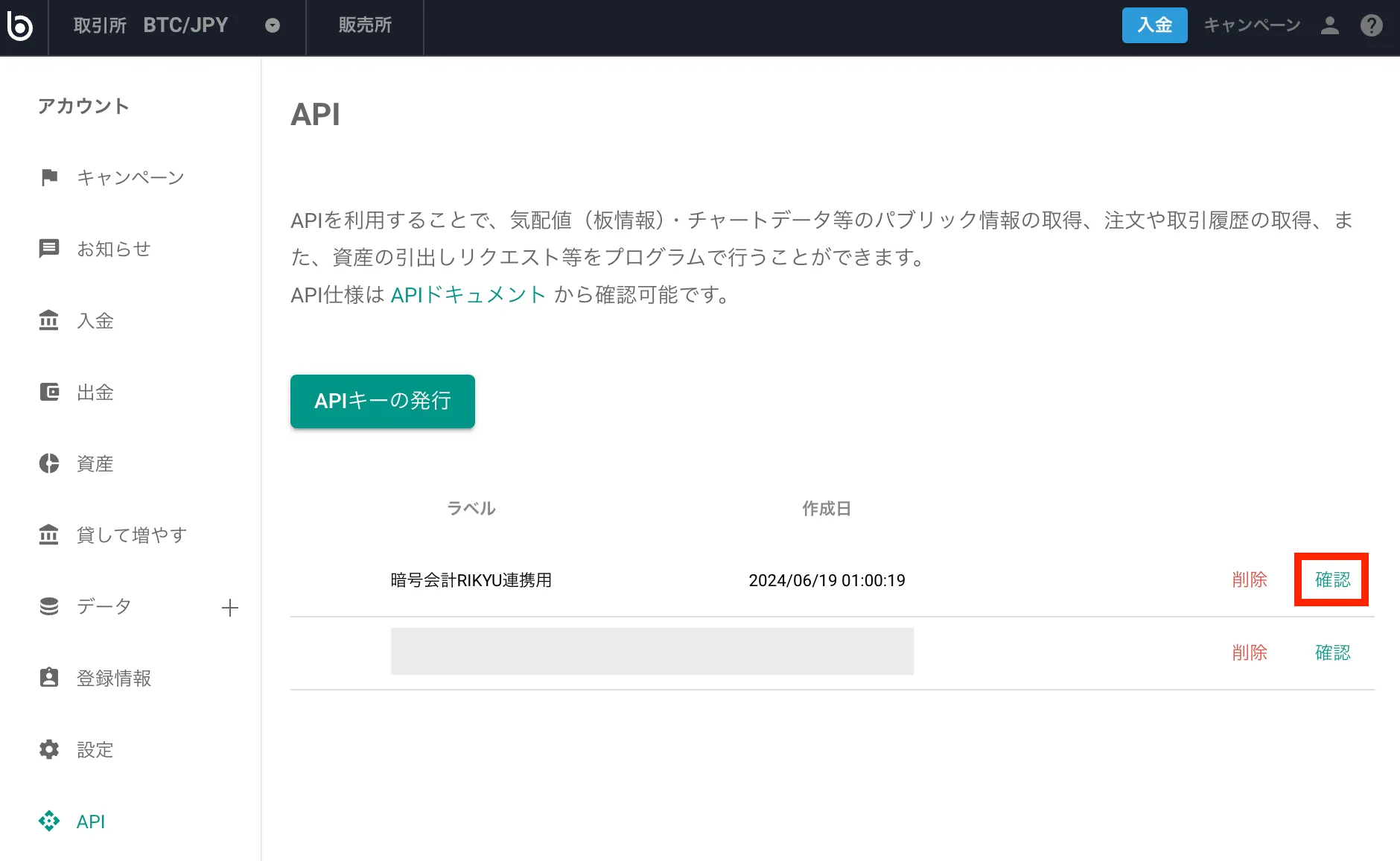 - API連携を解除する場合は、bitbank側でもAPIキーを削除してください