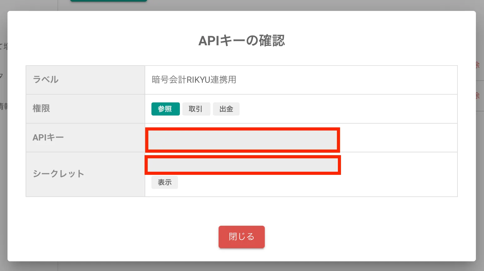 APIキーとシークレットは一度しか表示されません。必ず安全な場所に保存してください。紛失した場合は、新しいAPIキーを発行する必要があります。