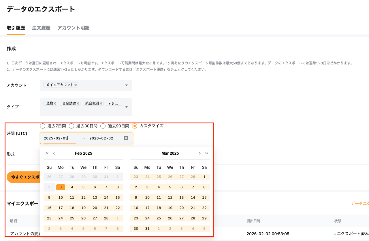 2-3. 期間を指定してエクスポートを実行する