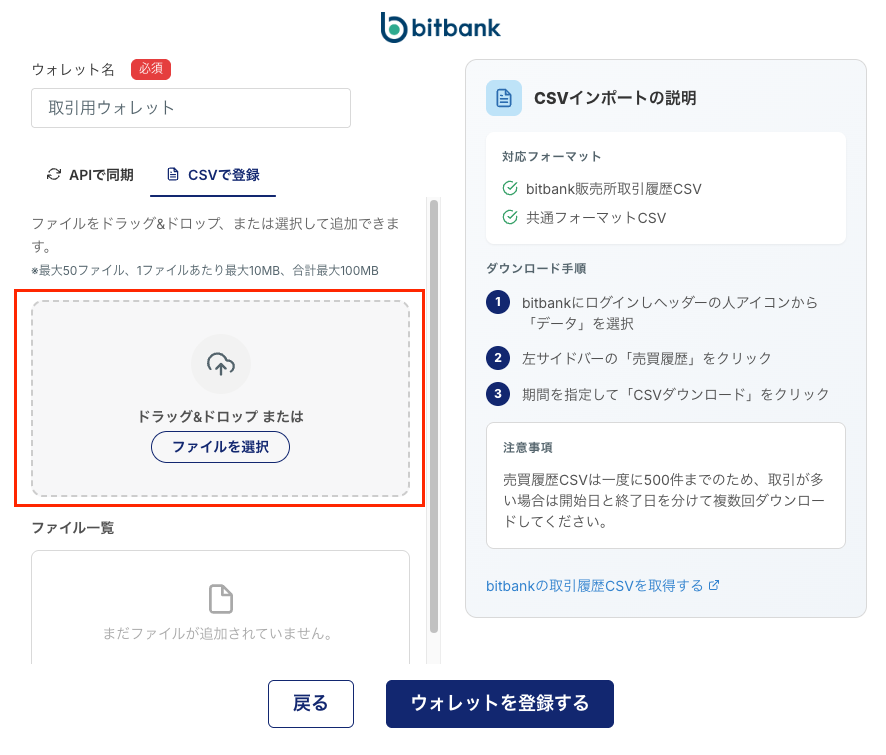 - ウォレット登録の基本的な流れ: ウォレット登録とCSVインポートの全体像
