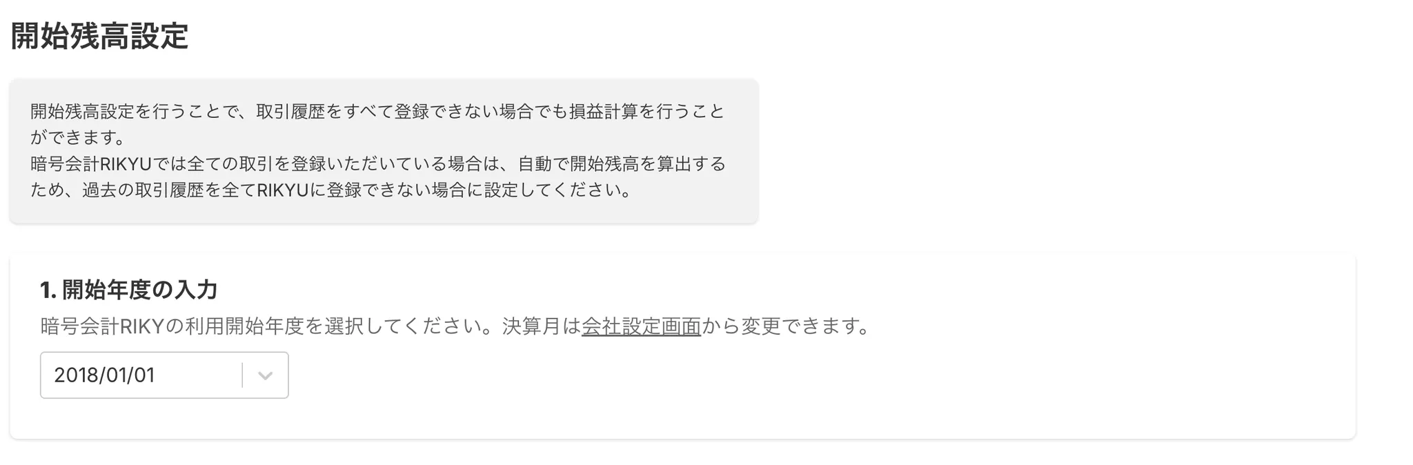 RIKYUでは、登録された取引履歴から期首時点のトークン保有数と平均取得価額を自動で計算します。取引履歴を完全に取り込んでいる場合は開始残高の設定は不要です。他のサービスからの移行など、登録している取引と残高にズレがある場合のみ、開始残高機能を利用してください。